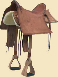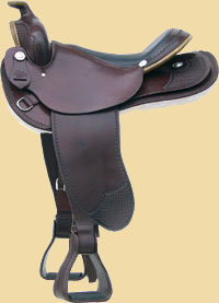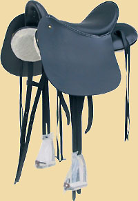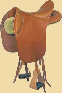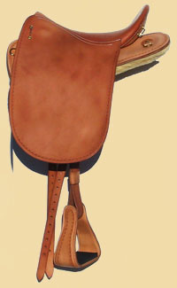 Oder mit breiten, lederbezogenen Steigbügeln ohne Pauschen.
