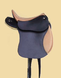 Der Klassik-Sattel in dunklem Leder mit heller Schaffell-Unterseite.