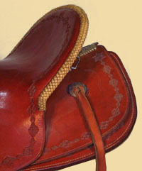 Rohhaut als schmückendes Beiwerk zum Sattelhorn.